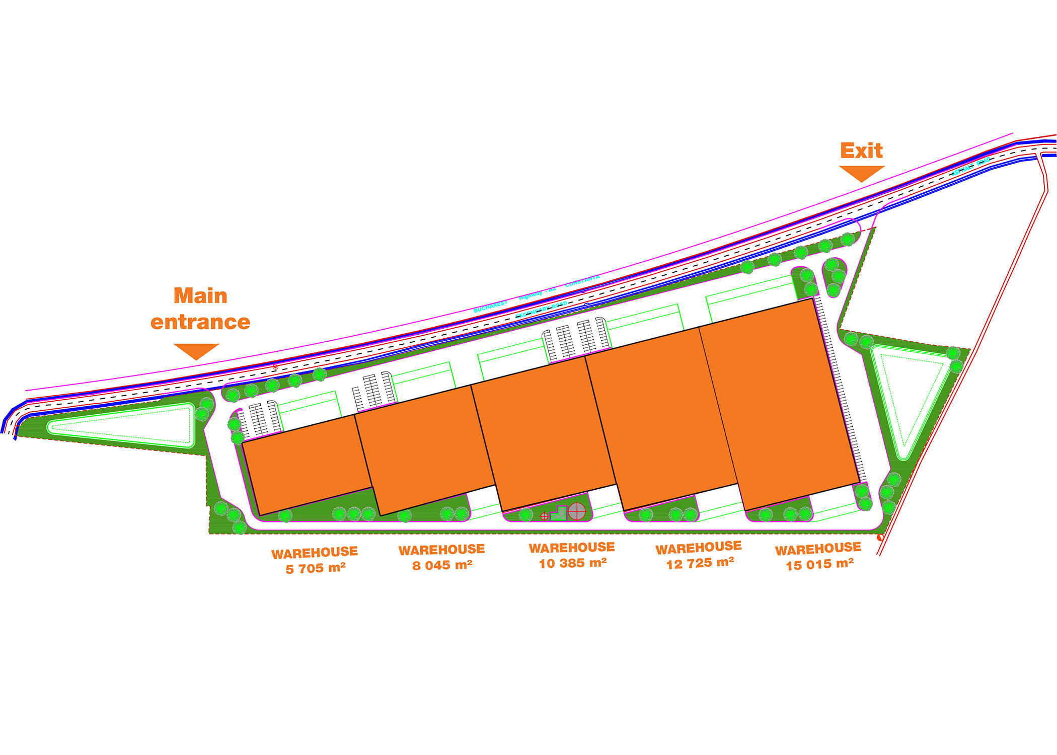 Slechts 30 km van Boekarest, aan de A2-snelweg naar Constanta, heeft WDP Roemenië een beschikbaar perceel van meer dan 40.000 m² voor de ontwikkeling van geavanceerde magazijnen of fabrieken.